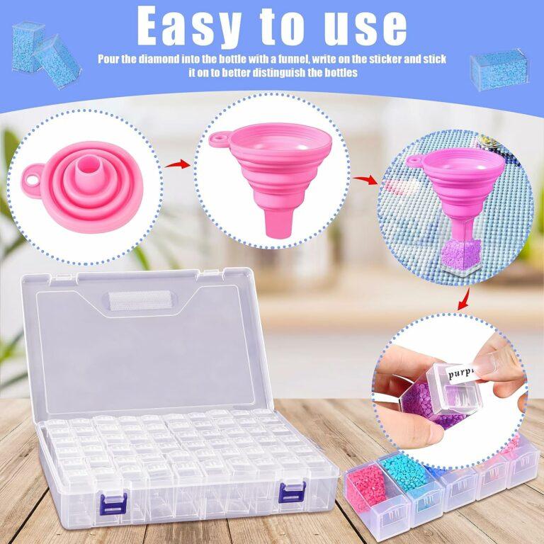Questo organizer per diamond painting accessori è composto da 60 piccoli vasetti trasparenti, ideali per conservare i tuoi strumenti e i tuoi strass per diamond painting. Grazie ai suoi scomparti, potrai tenere tutto in ordine e facilmente accessibile durante la tua sessione di pittura.