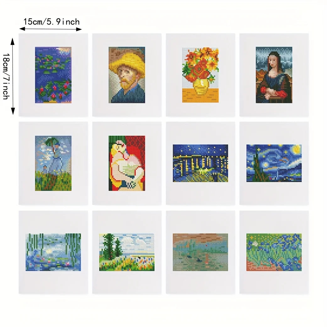 12 pezzi, set di mini pittura diamante, 15x18 cm/5,9x7 pollici, creazione di colorazione fatta a mano per il tempo libero domestico, decorazione della stanza appesa painti