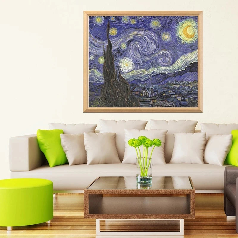 Porta un tocco d'arte raffinata nella tua casa con il nostro Kit di Ricamo con Diamanti 5D ispirato a Vincent Van Gogh. Questo set fai da te ti permette di creare un mosaico scintillante che cattura la bellezza dei celebri capolavori di Van Gogh, utilizzando diamanti acrilici di alta qualità e una tela stampata in HD. Perfetto per decorare il tuo salotto, camera da letto o ufficio, questo kit è anche un'idea regalo unica e speciale.