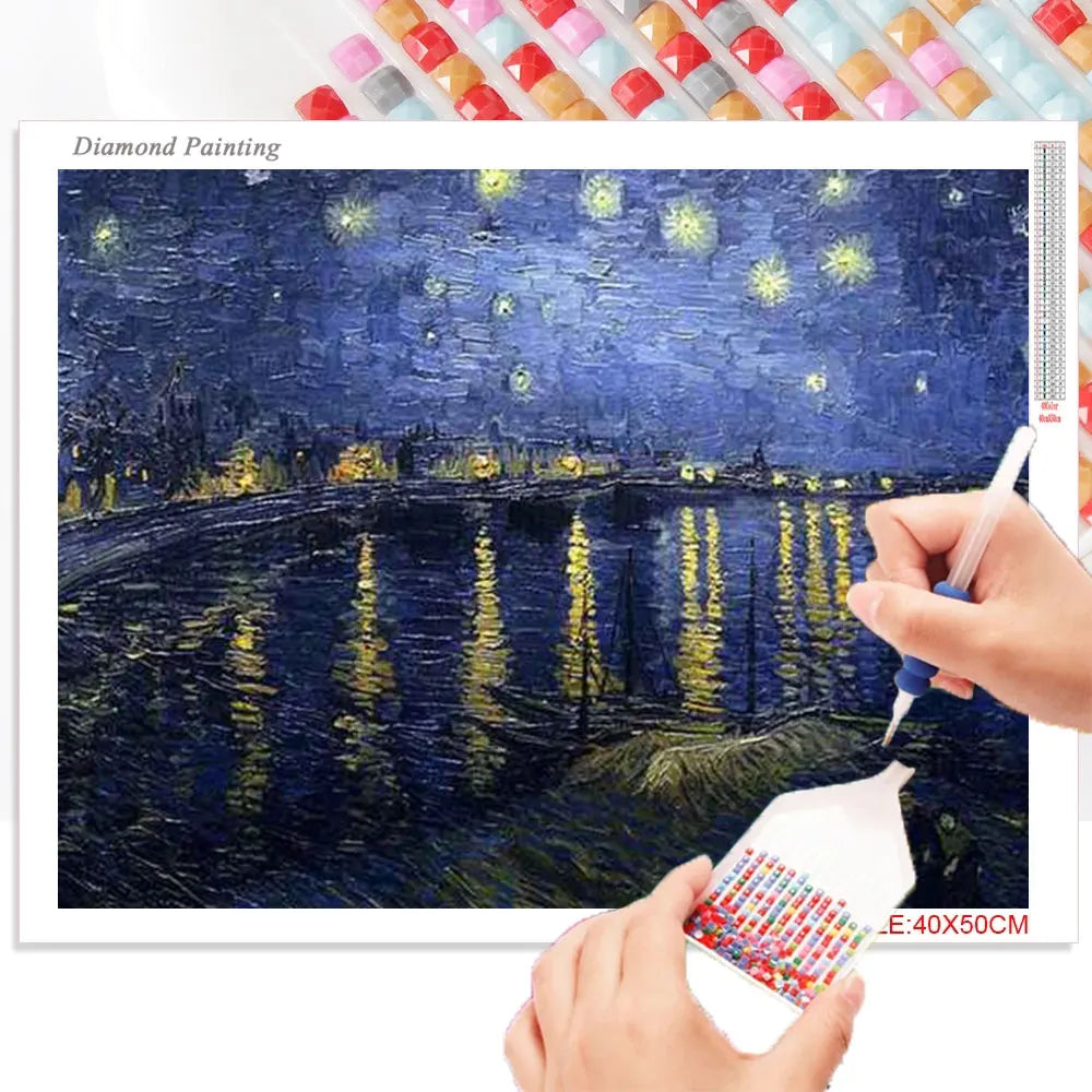 Ricamo Completo con Diamanti 5D - Accessori per Mosaico Fai da Te Van Gogh - Kit di Punto Croce e Lavoro a Mano - Regalo Speciale